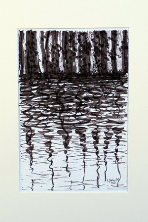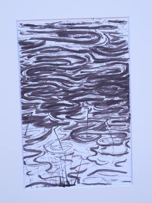 oben:Sepia auf Papier, Pinselzeichnungen, unten Druckcollagen-Ölmalerei